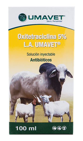Oxitetraciclina 5 % L.A. Umavet® está indicada para el tratamiento y control de enfermedades causadas por organismos susceptibles en bovinos, ovinos, caprinos y cerdos. Enfermedades que incluyen neumonía y complejo de fiebre por traslado asociada con Pasteurella, querato-conjuntivitis bovina (ojo enrojecido) causado por Moraxella bovis, pododermatitis (cojera) causada por Fusobacterium necrophorum, enteritis bacteriana (diarrea), causada por Escherichia coli, enfermedades causadas por Actinobacillus, leptospirosis, infecciones de las heridas, metritis, mastitis causada por cepas de organismos sensibles de staphylococci y streptococci, septicemia, infecciones del puerperio, infecciones bacterianas secundarias causadas principalmente por virus, etc.